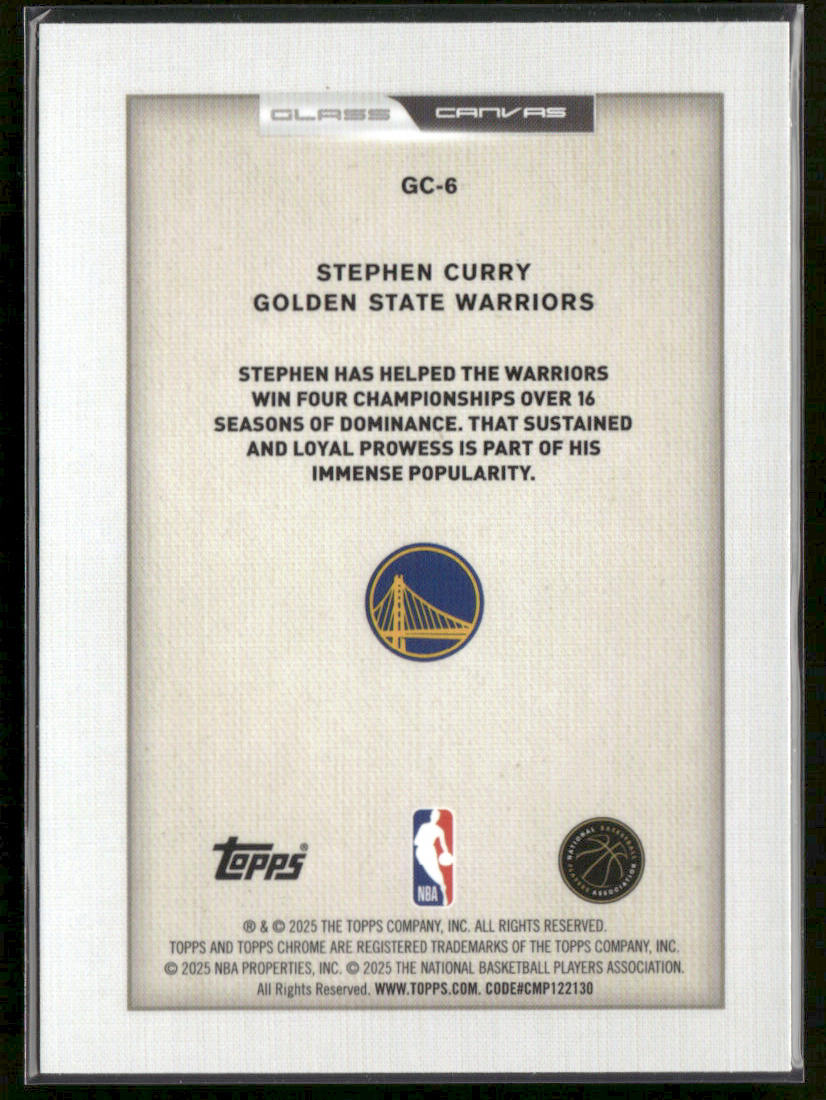 2025-26 Topps Chrome Basketball Glass Canvas Stephen Curry #GC-6 SSP