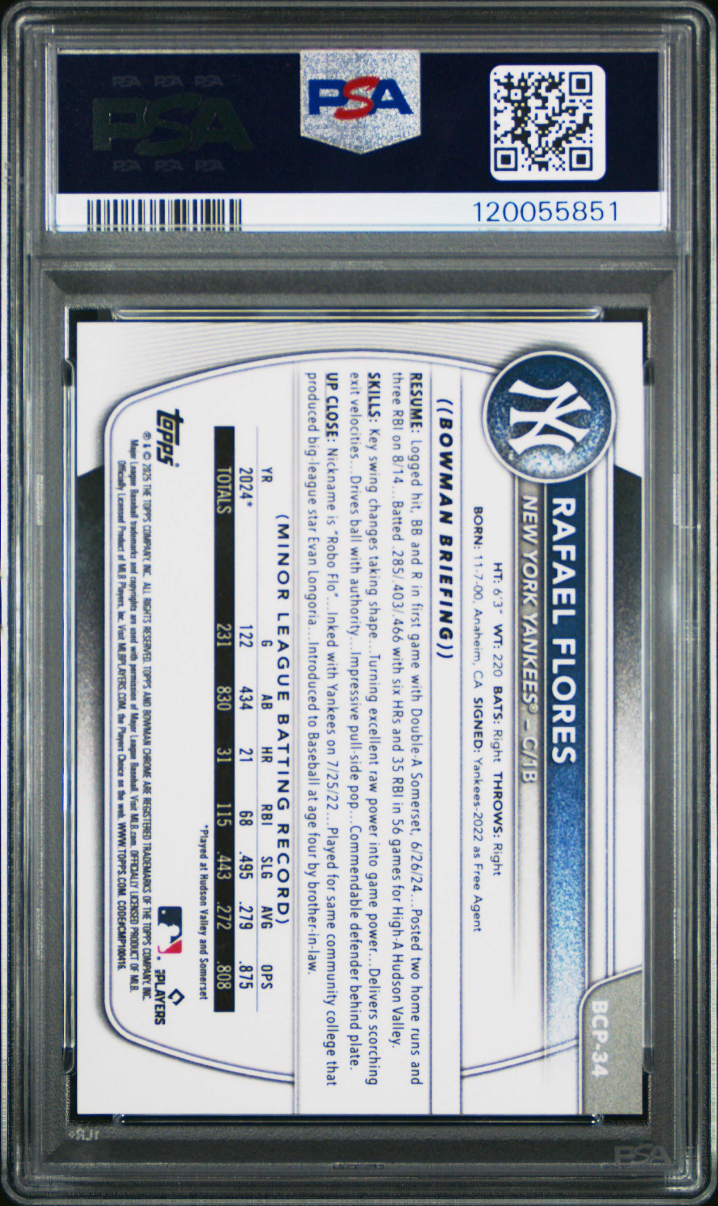 2025 Bowman Rafael Flores #BCP-34 Sunflower Seeds SSP 1st Bowman PSA 10