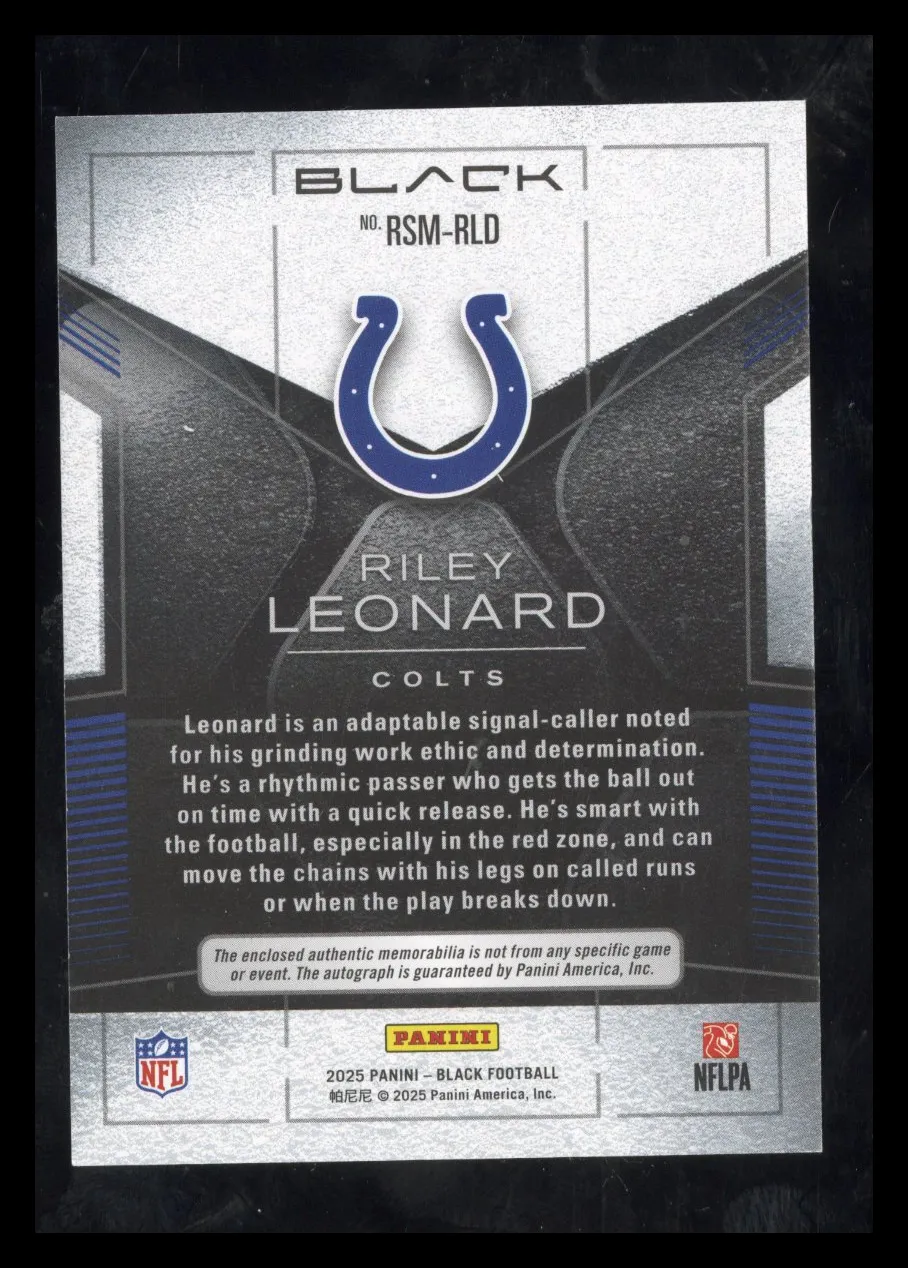 2025 Panini Black Riley Leonard #RSM-RLD RC Rookie Dual Patch Auto Royal 17/99