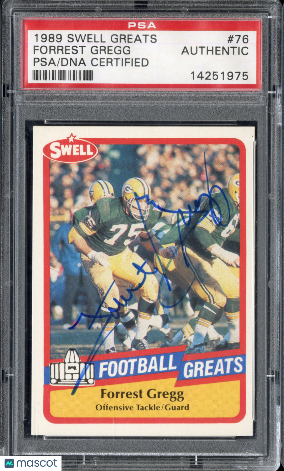 You are purchasing a 1989 Swell Greats Forrest Gregg #76 Hand Signed Auto PSA Authentic. You will receive the exact item in the photographs. Thank you for looking. COMBINED SHIPPING: We offer combined shipping on all items, after first auction won, each item after will be 0.50 extra. Please make sure to wait for payment till you receive an invoice. Paying before invoice will not give you the discount. LOCAL PICKUP: We offer local pickup for all items, at checkout make sure to select local pickup. Listed With Mascot.