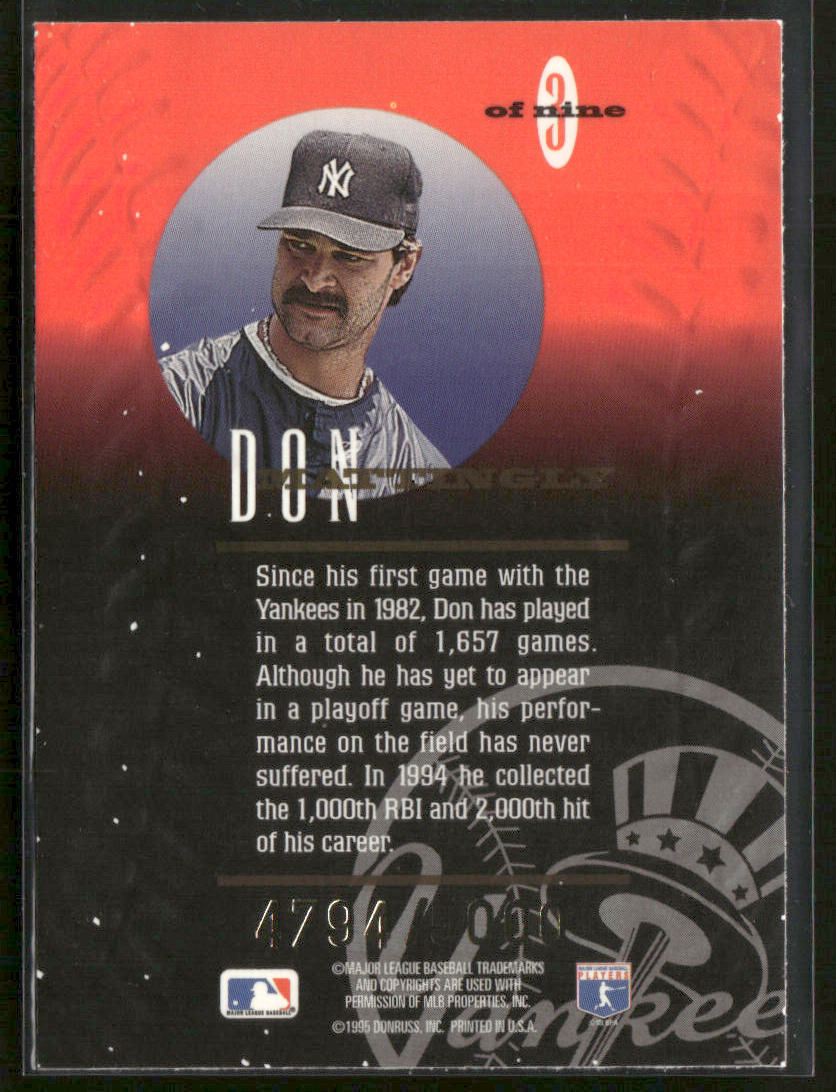 1995 Pinnacle Statistical Standouts Don Mattingly #9 4794/5000