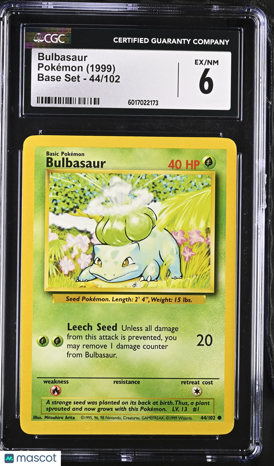 You are purchasing a 1999 Pokémon Bulbasaur #44/102 CGC 6. You will receive the exact item in the photographs. Thank you for looking. Listed With Mascot.