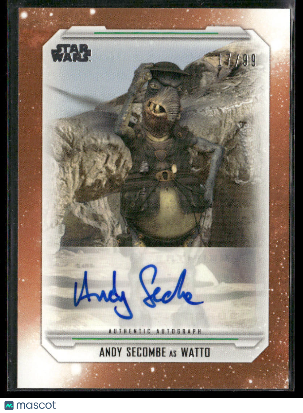 You are purchasing a 2019 Topps Star Wars Skywalker Saga Andy Secombe/Watto Auto 17/99 #A-ASW. You will receive the exact item in the photographs. Thank you for looking. Listed With Mascot.