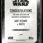 You are purchasing a 2019 Topps Star Wars Skywalker Saga Andy Secombe/Watto Auto 17/99 #A-ASW. You will receive the exact item in the photographs. Thank you for looking. Listed With Mascot.