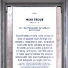 You are purchasing a 2021 Topps Through The Years Insert Mike Trout #9 PSA 9. You will receive the exact item in the photographs. Thank you for looking. COMBINED SHIPPING: We offer combined shipping on all items, after first auction won, each item after will be 0.50 extra. Please make sure to wait for payment till you receive an invoice. Paying before invoice will not give you the discount. LOCAL PICKUP: We offer local pickup for all items, at checkout make sure to select local pickup. Listed With Mascot.