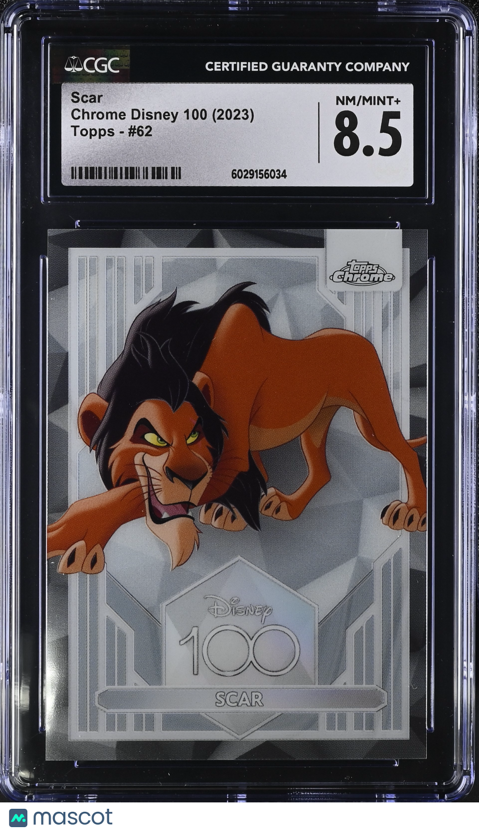 You are purchasing a 2023 Disney Chrome Disney 100 Scar #62 CGC 8.5. You will receive the exact item in the photographs. Thank you for looking. Listed With Mascot.