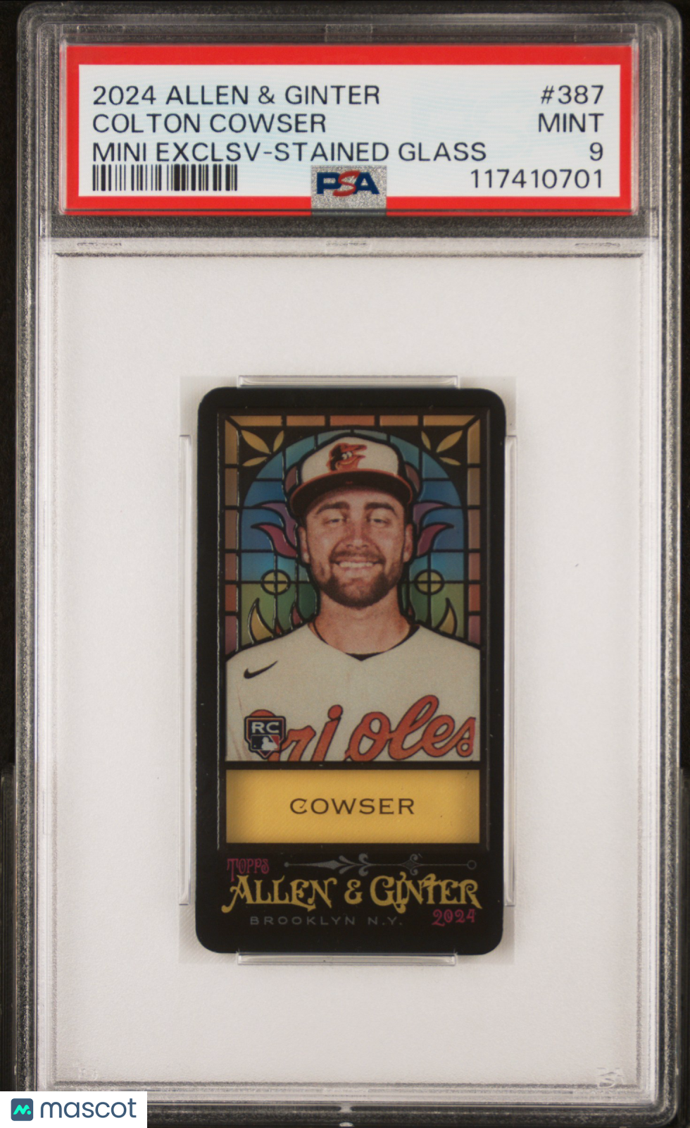 You are purchasing a 2024 Topps Allen & Ginter Colton Cowser #387 Stained Glass SSP RC Rookie PSA 9. You will receive the exact item in the photographs. Thank you for looking. COMBINED SHIPPING: We offer combined shipping on all items, after first auction won, each item after will be 0.50 extra. Please make sure to wait for payment till you receive an invoice. Paying before invoice will not give you the discount. LOCAL PICKUP: We offer local pickup for all items, at checkout make sure to select local pickup. Listed With Mascot.