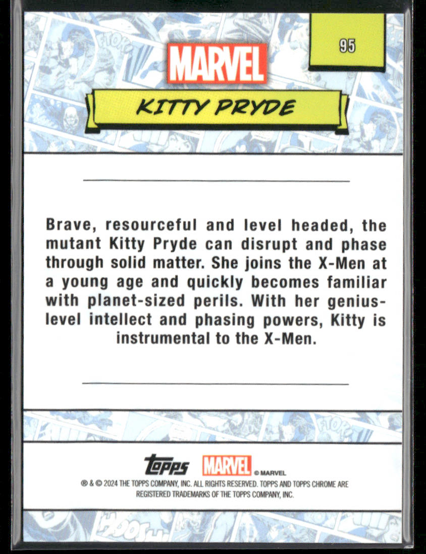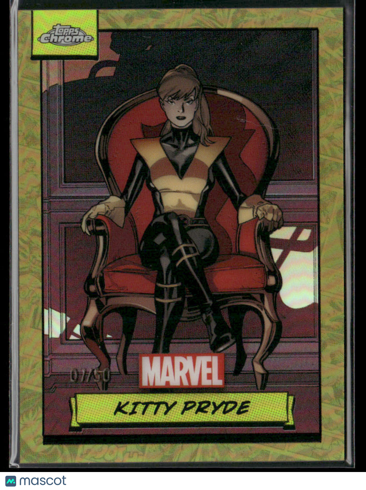You are purchasing a 2024 Topps Chrome Marvel Kitty Pryde Gold Refractor 07/50 #95. You will receive the exact item in the photographs. Thank you for looking. Listed With Mascot.