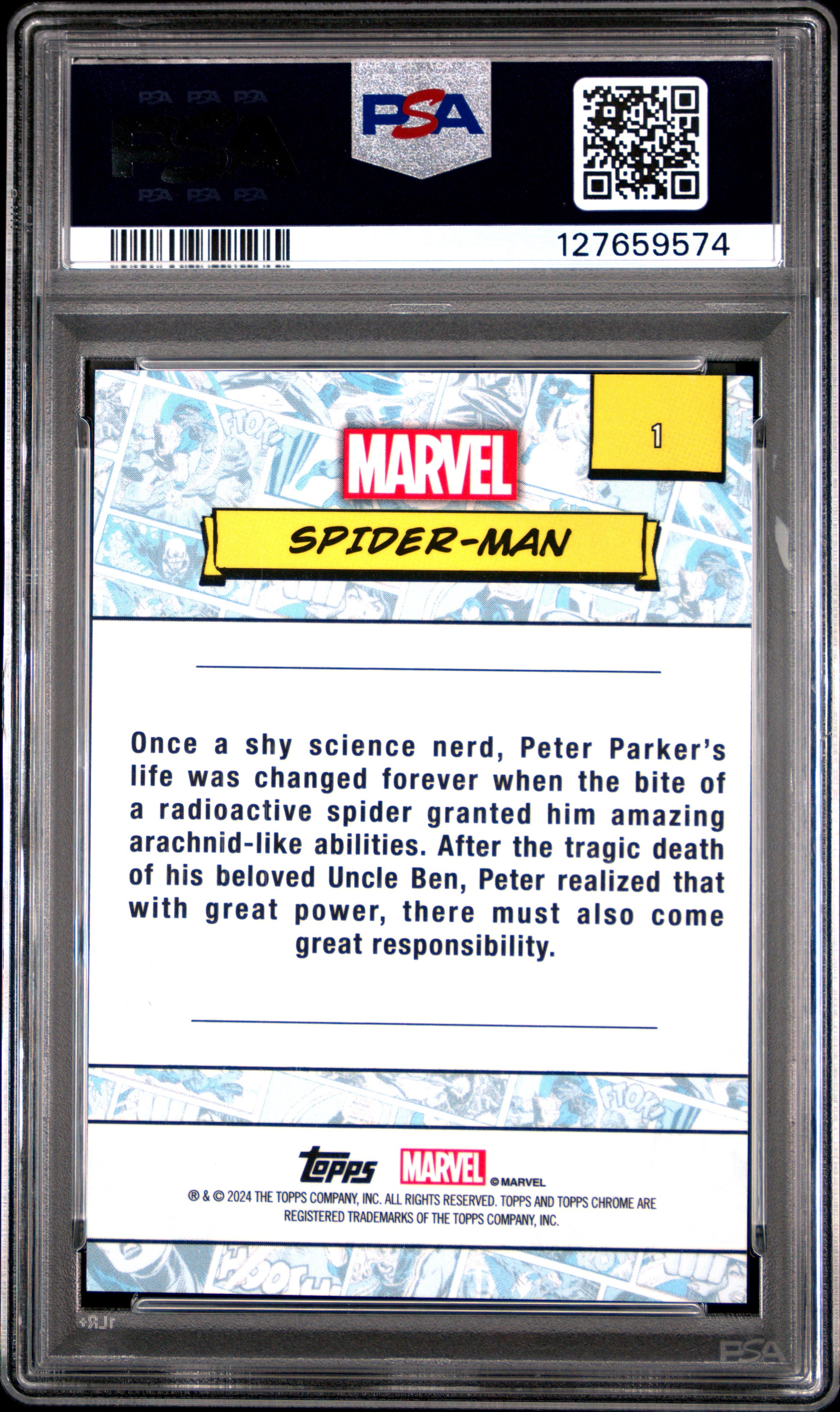 2024 Topps Chrome Marvel Sapphire Edition Spider-Man #1 PSA 10