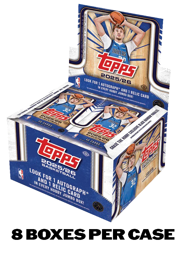 Each Box contains 4 Numbered Parallels, 1 Autograph Card, 1 Relic Card, and 2 Promo Packs, on average! Box Break: (on average) – 4 Numbered Parallels – 1 Autograph Card – 1 Relic Card – 2 Promo Packs – 4 Short Insert Cards – 4 1980-81 Topps Basketball Inserts – 14 Insert Cards – 12 Base Parallels The Wait is Over! 2025 Topps Flagship Basketball is BACK after years of anticipation – and it’s bigger, bolder, and better than ever! Get ready to rip into a slam – dunk set packed with the hottest Rookies, superstar Vets, and legendary Retired NBA icons. The 2025 Topps Flagship Basketball set delivers fresh, clean designs that capture the pulse – pounding energy of today’s game – all while honoring the iconic look and feel of past Flagship releases. Find Iconic Golden Mirror SSPs, Bold Home Court case hits, Rookie Photo shoot dual autographs, and so much more! Collect the 300 card Base set and chase incredible autographs, relics, and super short printed inserts. Configuration: 10 Packs Per Box, 40 Cards Per Pack + 2 Promo Packs Listed With Mascot.