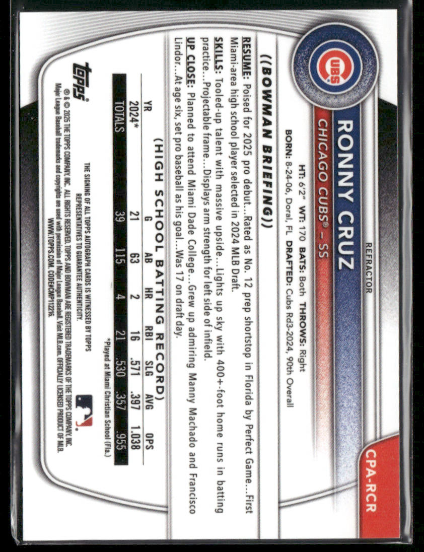 You are purchasing a 2025 Bowman Chrome Juan Cabada #CPA-JC 1st Bowman Auto. You will receive the exact item in the photographs. Thank you for looking. COMBINED SHIPPING: We offer combined shipping on all items, after first auction won, each item after will be 0.50 extra. Please make sure to wait for payment till you receive an invoice. Paying before invoice will not give you the discount. LOCAL PICKUP: We offer local pickup for all items, at checkout make sure to select local pickup. Listed With Mascot.