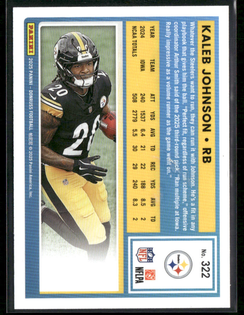 2025 Panini Donruss Kaleb Johnson #322 No Name Variation SP Rated Rookie