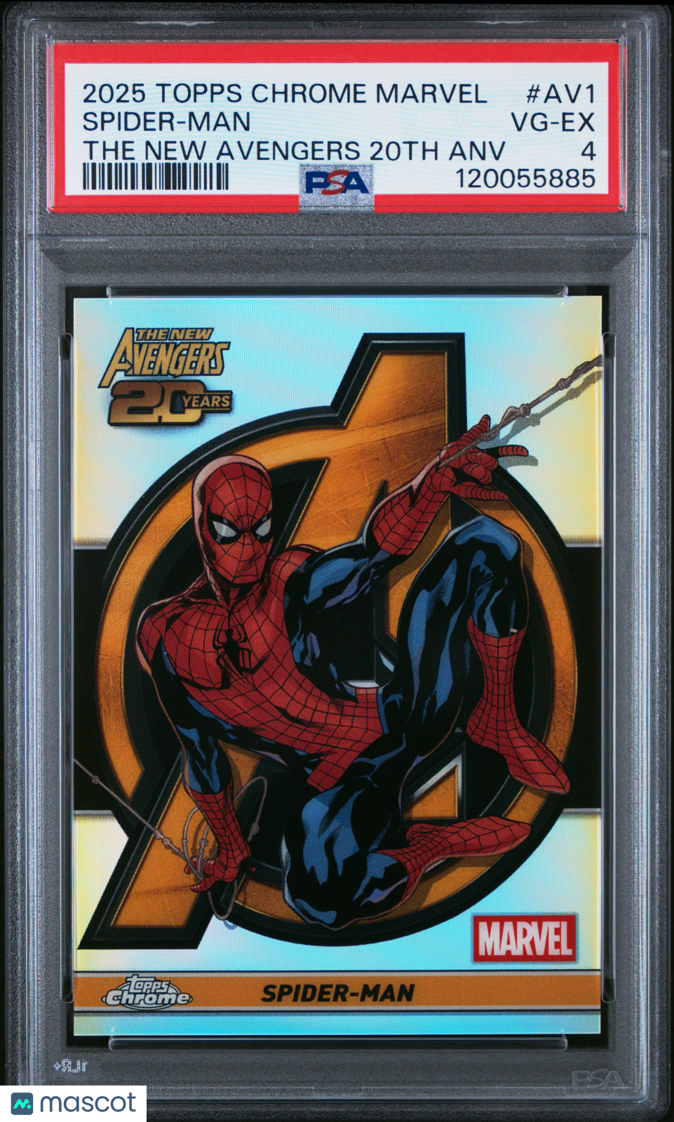 2025 Topps Chrome Marvel The New Avengers 20th Anniversary Spider-Man PSA 4