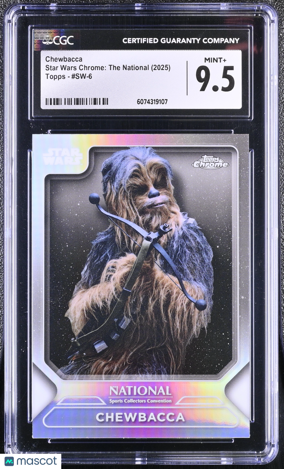 You are purchasing a 2025 Topps Chrome Star Wars The National Chewbacca #SW-6 Refractor CGC 9.5. You will receive the exact item in the photographs. Thank you for looking. COMBINED SHIPPING: We offer combined shipping on all items, after first auction won, each item after will be 0.50 extra. Please make sure to wait for payment till you receive an invoice. Paying before invoice will not give you the discount. LOCAL PICKUP: We offer local pickup for all items, at checkout make sure to select local pickup. Listed With Mascot.
