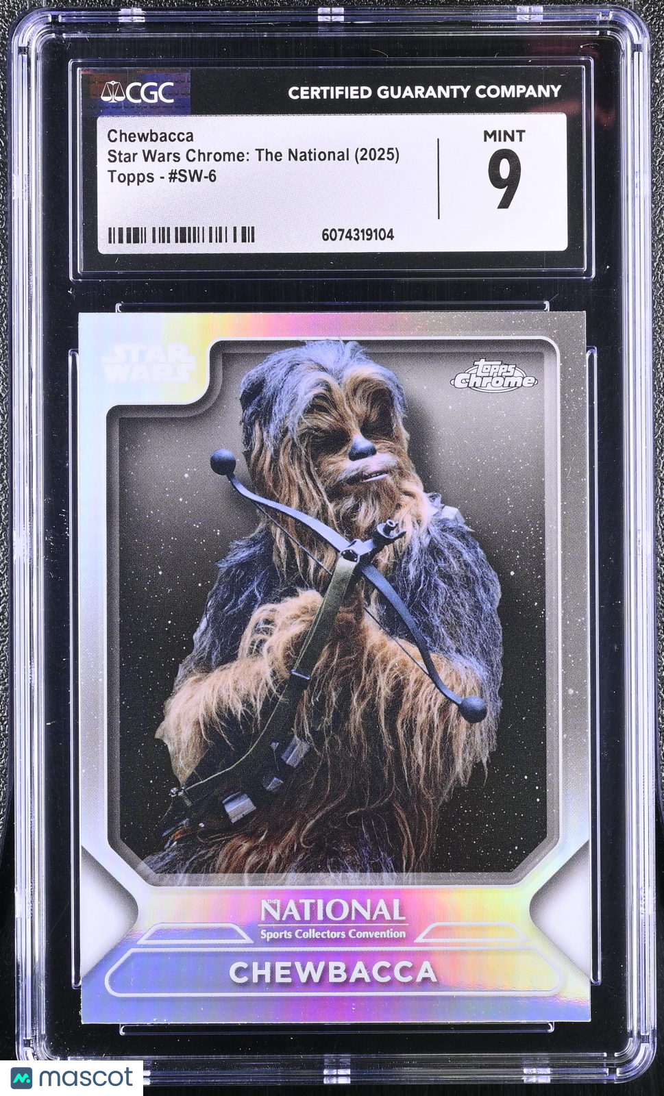 You are purchasing a 2025 Topps Chrome Star Wars The National Chewbacca #SW-6 Refractor CGC 9. You will receive the exact item in the photographs. Thank you for looking. COMBINED SHIPPING: We offer combined shipping on all items, after first auction won, each item after will be 0.50 extra. Please make sure to wait for payment till you receive an invoice. Paying before invoice will not give you the discount. LOCAL PICKUP: We offer local pickup for all items, at checkout make sure to select local pickup. Listed With Mascot.